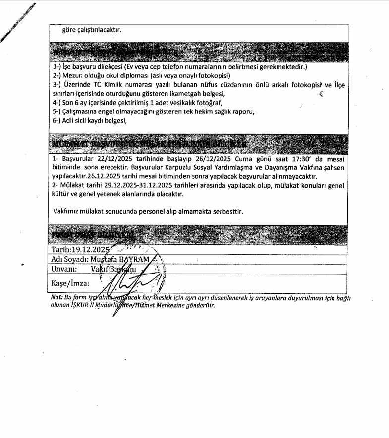 KARPUZLU SOSYAL YARDIMLAŞMA VE DAYANIŞMA VAKFI VEFA YAŞLI EVDE BAKIM PROGRAMI KAPSAMINDA TEMİZLİK PERSONELİ GEÇİCİ İŞÇİ ALIM İLANI